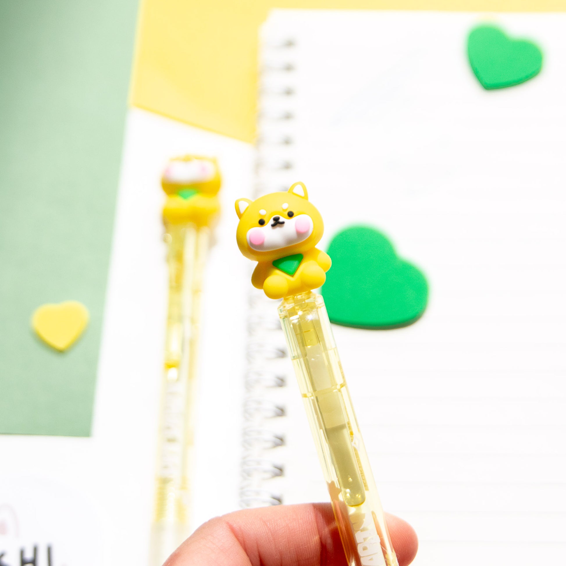 - Stylo gel effaçable doté d'un embout en forme de shiba inu mignon faisant office de gomme