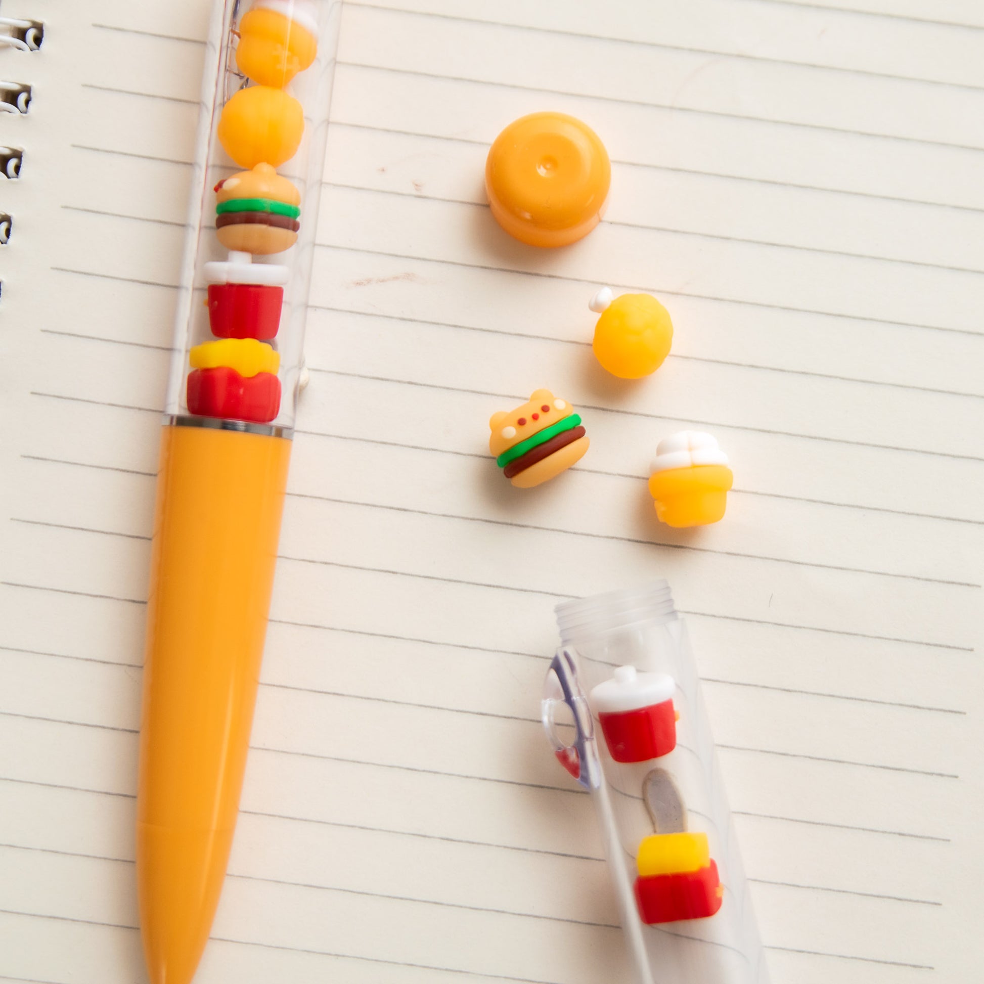 - Stylo à bille avec figurines Fast Food dans le corps transparent