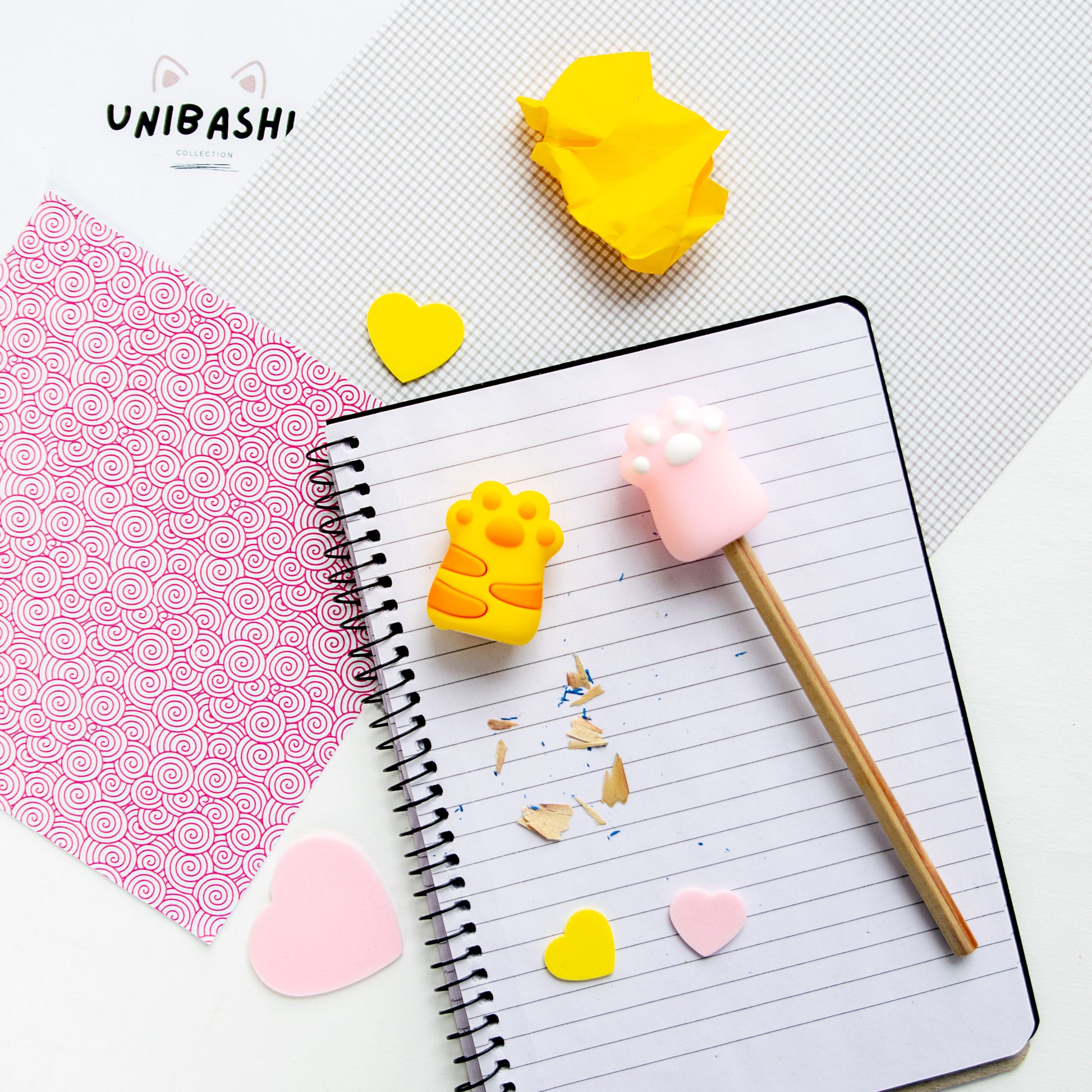 - Forme de patte de chat adorable en 2 coloris : rose pastel et jaune soleil